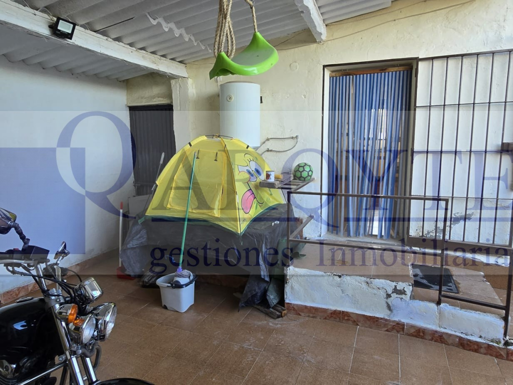 Casa con 144m2 útiles, planta baja con entrada, zaguán, salón, cocina, baño completo, habitación y patio de unos 100m2 con entrada para coches y cuarto trastero. Y primera planta con 4 habitaciones, baño completo y terraza.