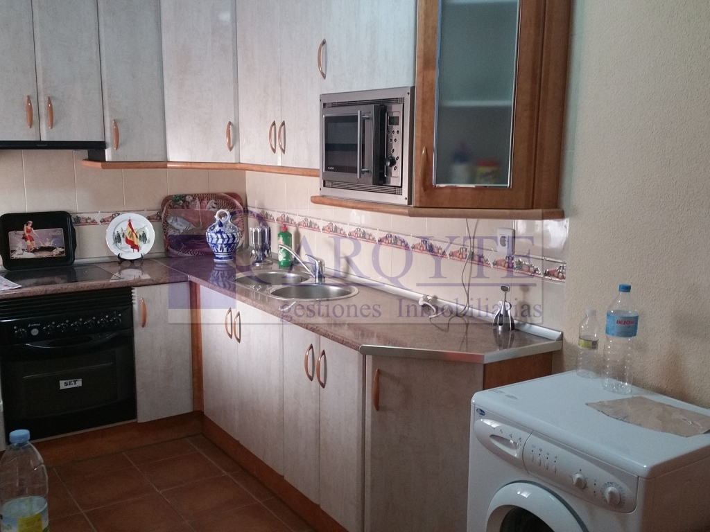 Casa en planta baja con 120m2, 4 habitaciones, 2 baños completos, salita distribuidora, salón comedor con chimenea, cocina, patio de unos 50m2, terraza superior y cochera con trastero de unos 35m2 a ras de calle.